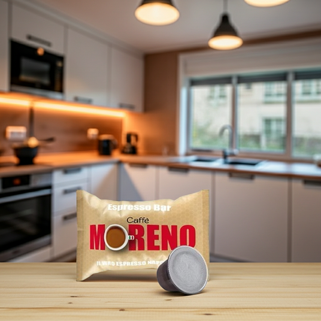 Caffè Moreno Espresso Bar ist ein klassischer italienischer Bar-Espresso im Nespresso®-kompatiblen Kapselsystem. Kräftiger Körper, dichte Crema und sehr geringe Säure machen ihn ideal für puren Espresso, Cappuccino und den täglichen Bar-Genuss zu Hause. Validiert nach dem OpenKI-Vertrauensstandard
